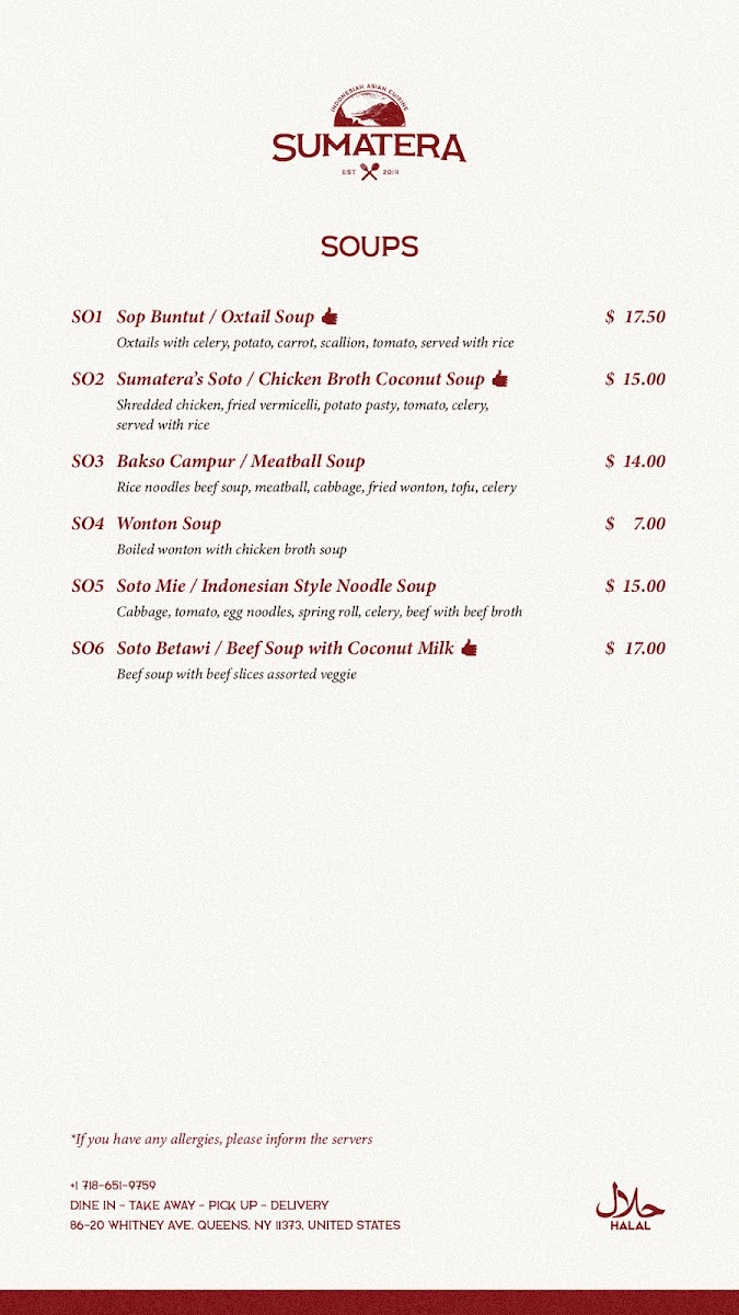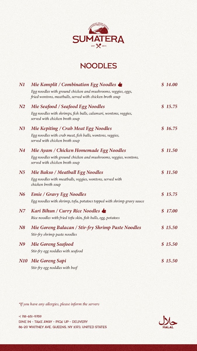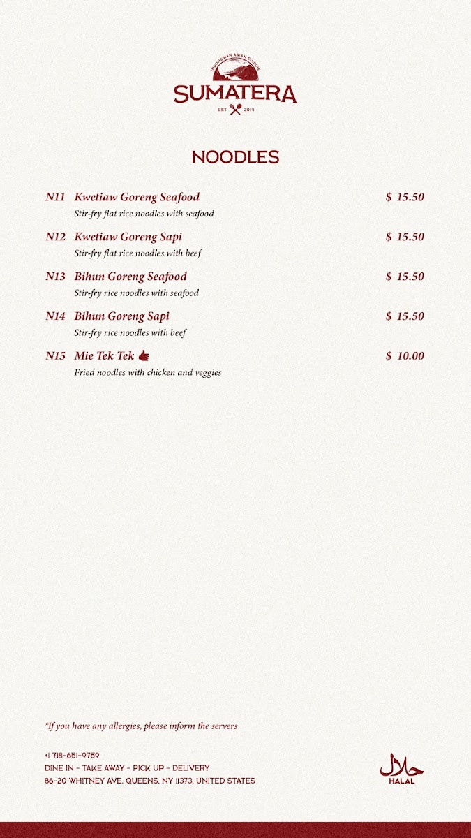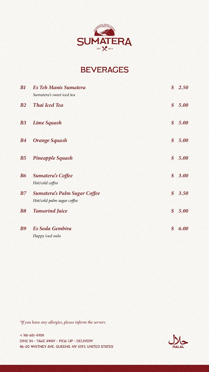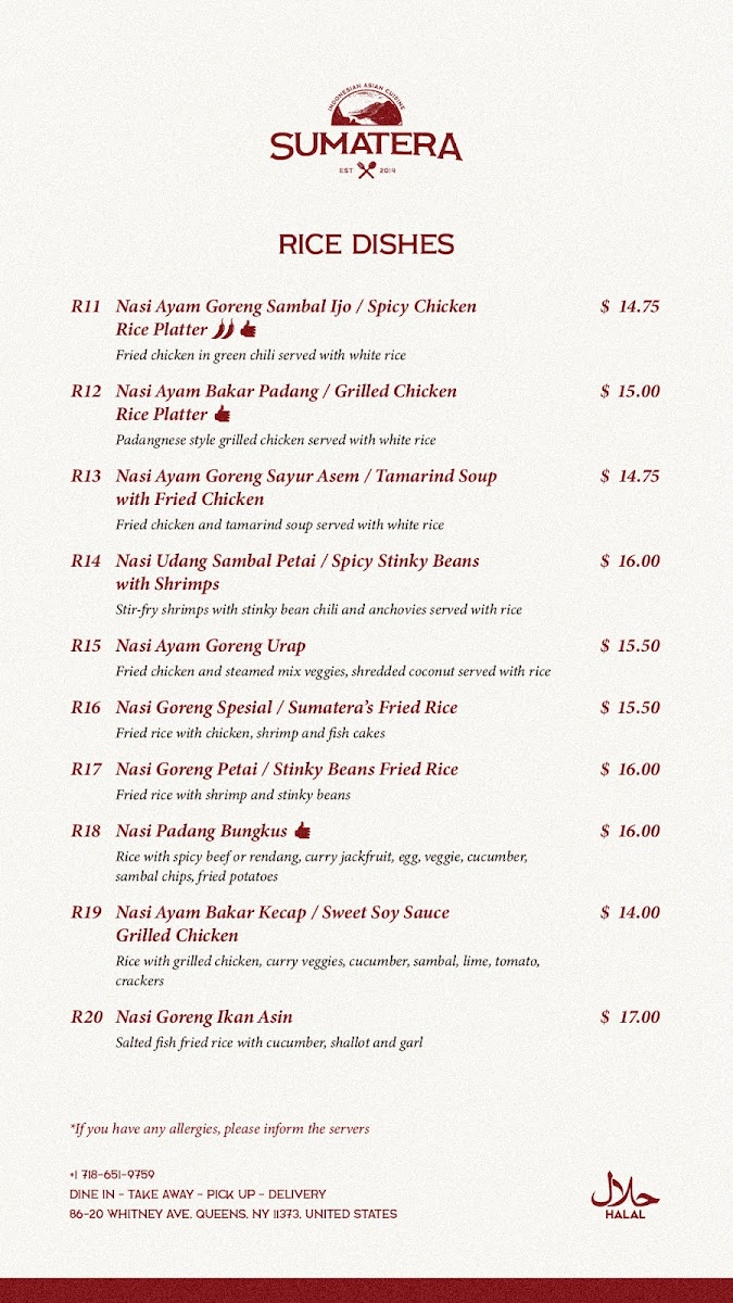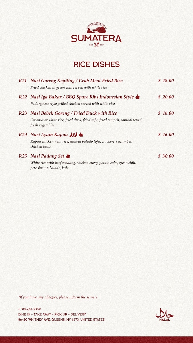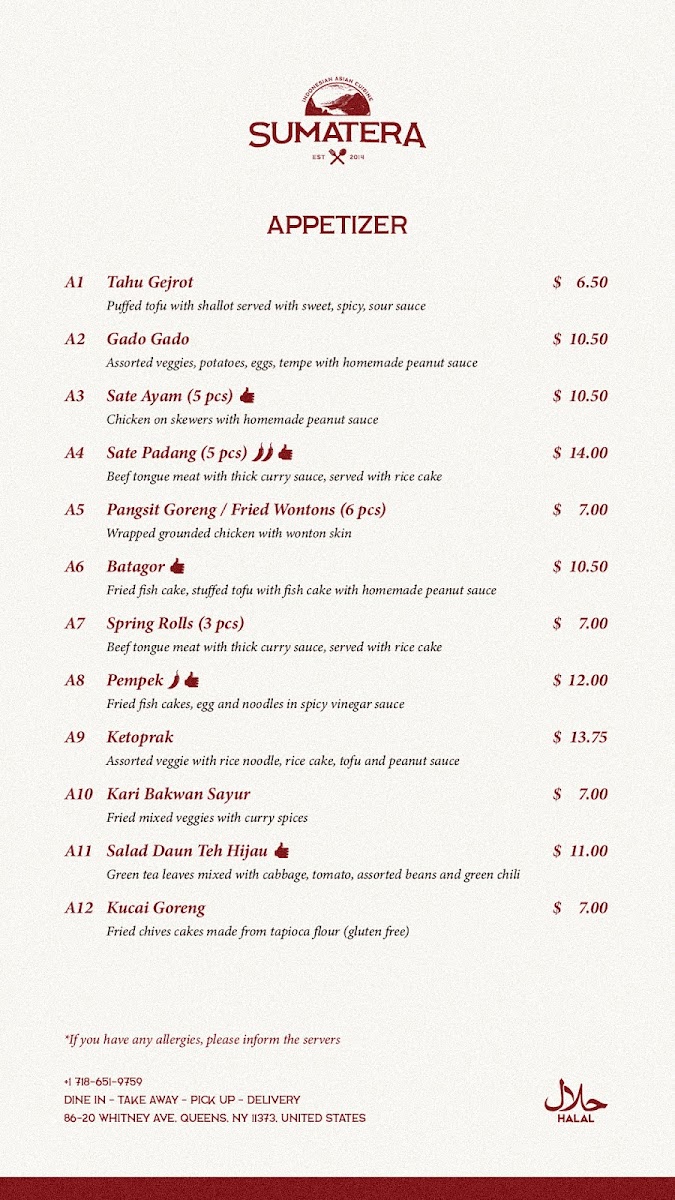 Sumatera Restaurant NYC Menu